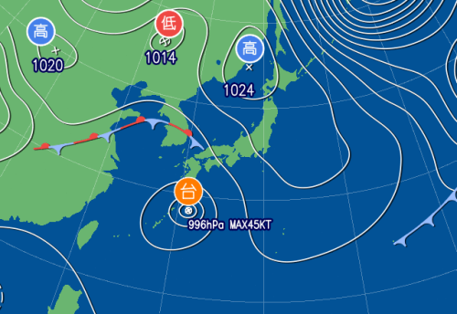 沖縄本島地方以北は台風23号の影響により、風が強く曇りや雨の天気となるでしょう。雷雨となる所もありそうで、落雷や突風・竜巻、急な激しい雨、低地での浸水、高波等に注意が必要です。南西諸島のその他の地域は、高気圧に覆われ南の方ほど概ね晴れるものの、湿った空気の影響により一時的に雨や雷雨となる所がありそうです。落雷や突風、急な強い雨等に注意してください。