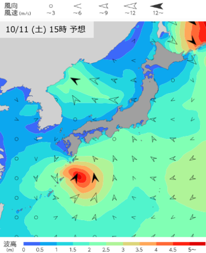 台風23号は11日夜には九州の南海上に達し、その後本州の南海上を東へ進む見込みです。そのため西日本の太平洋沿岸地域や沖縄本島地方、伊豆諸島では雨が降り易く、雨風が強まる所があるでしょう。一方前線が日本海から東日本付近で明瞭化するため、東日本や東北南部を中心に曇りや雨のぐずついた天気となる見込みです。北海道は高気圧に覆われ概ね晴れ、南西諸島は台風から離れるほど晴れるもののにわか雨が降る所もありそうです。