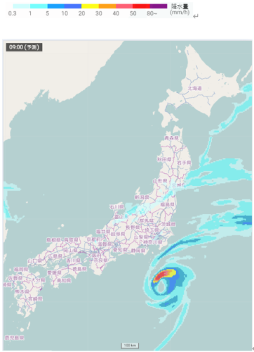北陸は雲が広がって、北陸三県は昼頃まで、新潟県では夕方まで、所により雨が降るでしょう。関東甲信は雲が広がって雨が降りやすく、千葉県では所により雷を伴い、関東北部では昼過ぎから雨が降る見込みです。東海は晴れますが、にわか雨は降るでしょう。伊豆諸島では台風第23号の接近と通過に伴い、明け方から昼前にかけて、雷を伴った激しい雨や非常に激しい雨が降り、大雨の恐れがあります。暴風、土砂災害、低い土地の浸水、河川の増水に厳重に警戒、落雷、竜巻などの激しい突風、短時間の強い雨に注意して下さい。不要な外出は避け、地元自治体が発表する避難に関する情報に注意して下さい。関東と伊豆諸島の沿岸と周辺海域では、所々で霧が発生し、非常に強い風が吹いて猛烈にしけています。船舶は、うねりを伴った高波と暴風に厳重に警戒し、視程障害に注意して下さい。