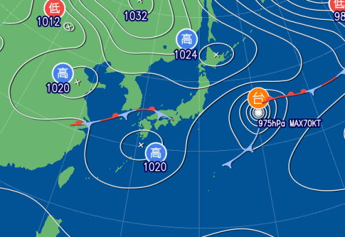 台風23号は東の海上に進み、北海道と九州南部を中心に高気圧に覆われるものの、西日本の日本海沿岸から東日本にかけて停滞前線が明瞭化してくる見込みです。そのため東北南部~東日本~中国から九州北部沿岸にかけて雲が多く、昼頃より雨が降りやすい天気となるでしょう。東北北部以北は概ね晴れ、四国や九州南部以西も概ね晴れる所が多いもののにわか雨が降る所もありそうです。