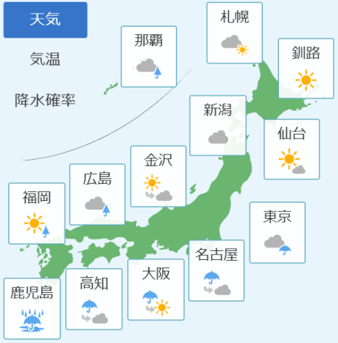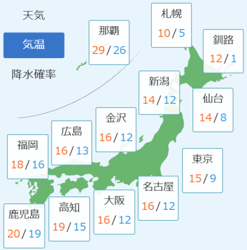 今日の天気と予想気温(全国)