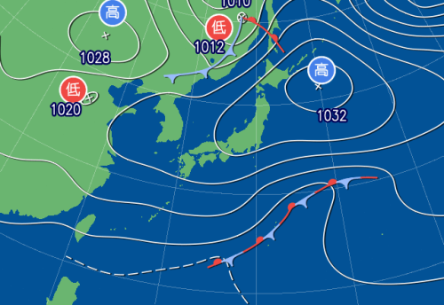 日本付近は高気圧に広く覆われるものの、夜になると北海道の西海上や東シナ海におい前線が明瞭化し東進してくる見込みです。そのため日中は、広い範囲で概ね晴れるでしょう。昼過ぎより西から雲が出やすくなり、夜のはじめ頃より雨が降り出す所がありそうです。