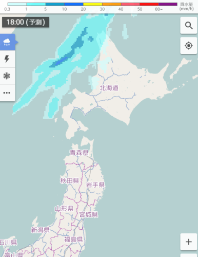 北海道は、朝方は概ね晴れる所が多いものの、日本海から前線が近づくに伴って西から雲が広がり、日本海沿岸では夜のはじめ頃より雨が降り出す所がありそうです。夜遅くには前線は北海道に達し、前線付近では雷を伴って雨が強まる所があるでしょう。落雷や突風・竜巻、局地的な強い雨に注意してください。東北は、高気圧に覆われ概ね晴れる見込みです。