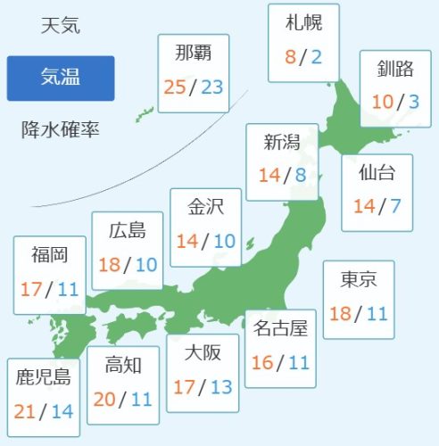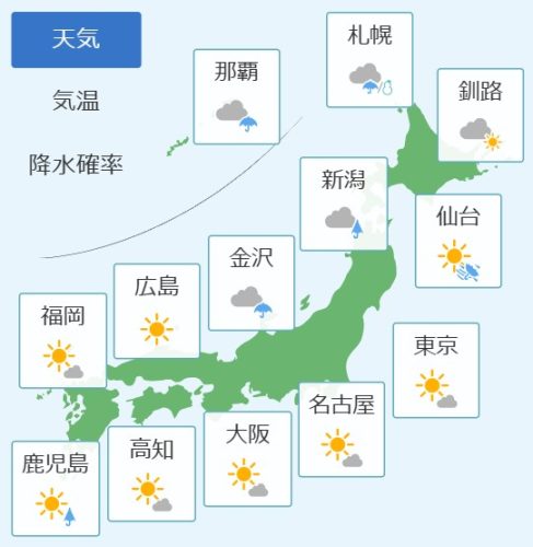 予想天気と気温(全国)