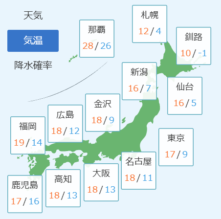 北日本では、明け方は冷え込んで、日中も寒いでしょう。暖かくしてお過ごしください。