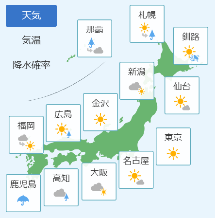 北海道と東北北部や山形県では雲が広がって、所により雨や雷雨になるでしょう。強風、落雷、竜巻などの激しい突風、ひょう、短時間の強い雨注意してください。お出かけの際は、最新の気象情報をご確認ください。東北南部の太平洋側では晴れるものの、夕方頃からにわか雨が降る見込みです。北日本の沿岸と周辺海域では、船舶は高波と強風に注意してください。