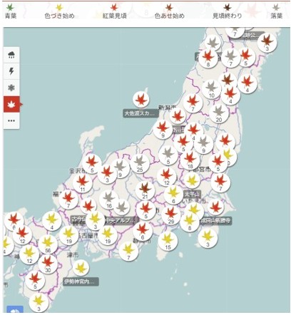 各地で穏やかに晴れて、行楽や紅葉狩りに適した天気となる見込みです。ただし、関東南部では朝のうち、沿岸部を中心に雨の降る所があるでしょう。外出時に雨が降っていなければ雨具は必要なさそうです。