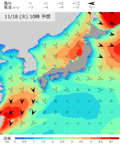 今日の日中の最高気温は全国的に昨日より低くなる見込みで、昨日より10℃以上低くなる所もありそうです。北西寄りの風が強く、気温より寒く感じますので、風を通さない暖かい服装でお出かけください。