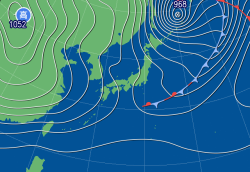 高気圧の張り出しに伴う寒気の影響により北寄りの風が強く、曇りや雨の天気となるでしょう。