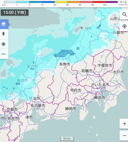 日中の最高気温は昨日より低く、北陸は10℃前後の気温、東海は15℃前後の気温、関東は13~16℃の気温となる所が多い見込みです。