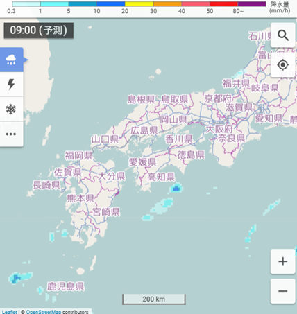 晴れ間が広がる所が多いですが、九州南部から四国の太平洋側では雲が広がりやすく、一部で雨が降りそうです。変わりやすい天気にご注意ください。