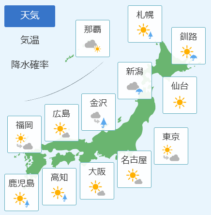 午前中は晴れ間もありますが、午後は北海道と東北北部の日本海側から雨や雪が降り出すでしょう。北海道では北部を中心に夜にかけて風雪が強まり、平地でも積雪となりそうです。車でお出かけの際は滑り止めを用意の上、安全運転を心がけましょう。