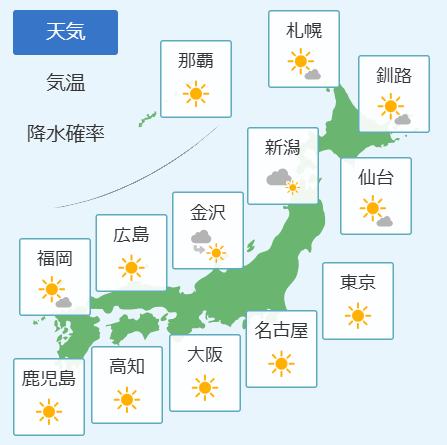 北海道の日本海側と東北北部は雪や雨が降りやすく、東北北部では所により雷を伴うでしょう。落雷、竜巻などの激しい突風、ひょう、短時間の強い雨に注意して下さい。北海道のオホーツク海側と太平洋側、東北南部は、概ね晴れる見込みです。東日本と西日本は、広い範囲で穏やかに晴れて、お出かけ日和や洗濯日和になるでしょう。奄美と沖縄地方は晴れますが、にわか雨が降る見込みです。北日本、北陸、伊豆諸島、沖縄地方の沿岸と周辺海域では、船舶は強風と高波に注意して下さい。