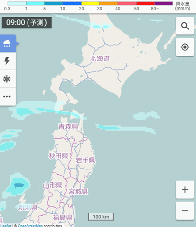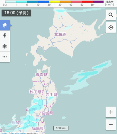 降水分布予想09・18時