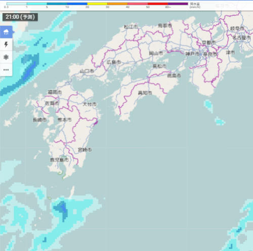 九州北部や中国地方では朝から雨が降るものの、午後は一時的に小康状態となるでしょう。夜には太平洋側も含めて再び雨の降りだす所が多く、暖かく湿った空気が流れ込んで大気の状態が不安定となるため、雷雨となる所がある見込みです。落雷や突風、降ひょうに注意が必要です。一方、近畿北部から中部にかけては、晴れる所が多い見込みです。