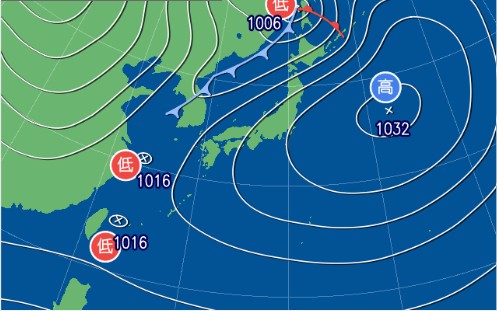今日は移動性高気圧が日本の東へ離れ、低気圧や寒冷前線が接近する影響で、日本付近には湿った空気が流れ込み、雨の範囲が広がるでしょう。北海道の日本海側、東海、西日本の日本海側、南西諸島では朝から、東日本から西日本の太平洋側では、日中から夜にかけて雨の降る所が多く、雷を伴って激しく降る所もある見込みです。一方、東北南部や北陸では晴れる所が多いでしょう。