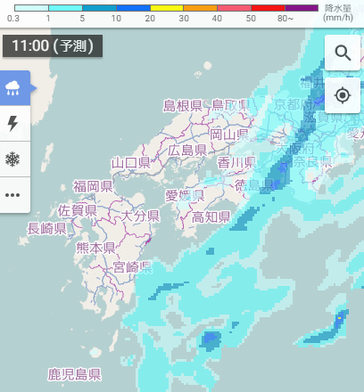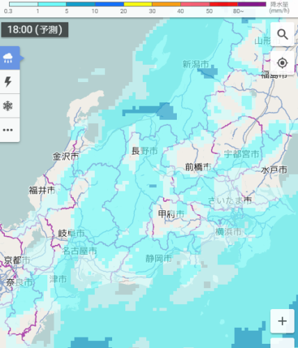 北陸や東海は明け方まで、関東は昼頃まで晴れ間が出る所があるものの、東日本は次第に西から雨域が広がり曇りや雨の天気となるでしょう。太平洋側では夜遅くより西から回復してくるものの、北陸では寒気の影響で曇りや雨、標高の高い所では雪となりそうです。前線付近では雷雨となる所もありそうで、落雷や突風、竜巻、降ひょう、局地的な強雨等に注意してください。また積雪の多い所では、落雪、雪崩等にも注意が必要です。