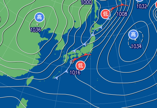 日本付近は低気圧や南北に伸びた前線が通過する影響により、全国的に曇りや雨、雪が降る所が多いでしょう。ただ、前線や低気圧の動きは早く、昼頃より西から次第に天気は回復し、夜遅くには西日本以西の広い範囲では概ね晴れそうです。