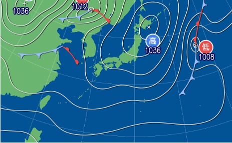 今日は移動性高気圧に覆われて、北日本の日本海側や北陸の天気も回復し、北日本から西日本にかけては晴れる所が多いでしょう。ただし、天気の変化は早く、午後になると西日本の太平洋側を中心に雲が広がり、夜には雨の降る所がある見込みです。南西諸島では雲が多く、にわか雨の降る所があるでしょう。