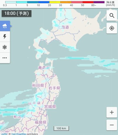 降水分布予想09・18時