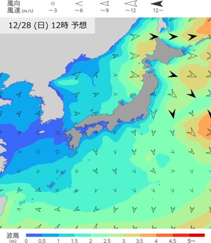 きょう12時の風と波の予想