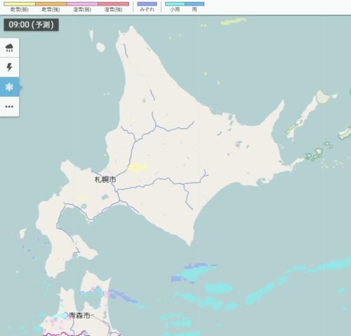 きょう09時の雪雲・雨雲の予想(北日本)
