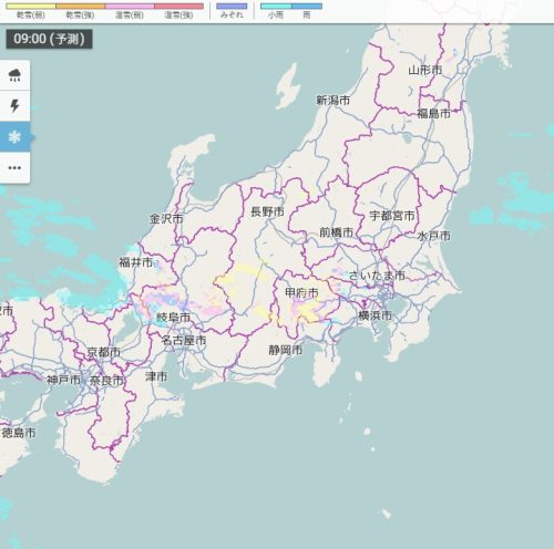 きょう09時の雪雲・雨雲の予想(東日本)