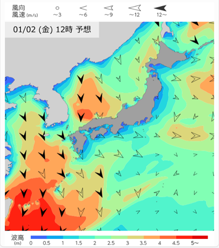 1月2日12時の波と風の予想