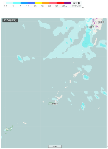 沖縄・奄美付近の雨雲の予想(1月2日12時)