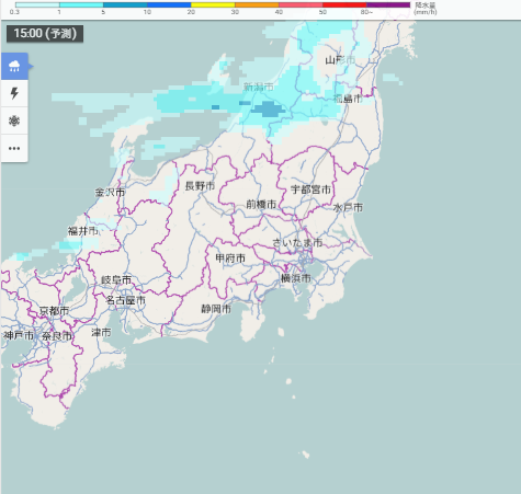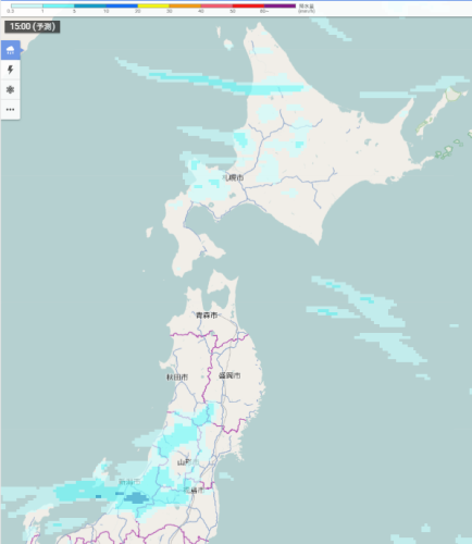 雨(雪)雲の予想(15時)