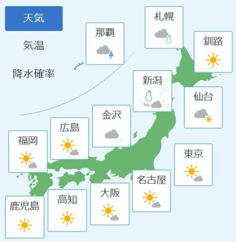 予想天気と気温(全国)