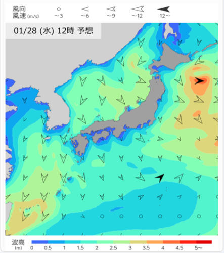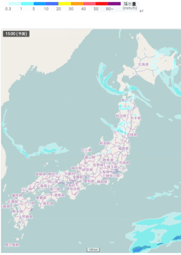日本付近の雪雲や雨雲の予想(1月28日15時)