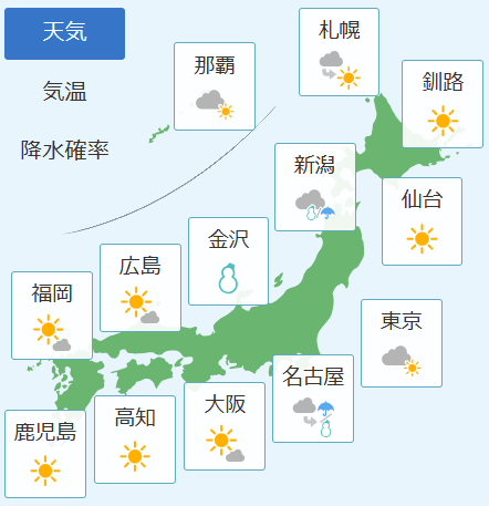 強い寒気が南下し、日本海側は再び冬の嵐となるでしょう。大雪に警戒が必要です。特に青森県と北陸~近畿の日本海側では短時間で積雪が急増するおそれがあります。十分にご注意ください。一方、太平洋側は晴れるところが多いものの、東海~近畿の新幹線沿線では積雪の可能性があります。最新の気象情報や交通情報をこまめに確認し、状況の変化に注意してください。日中の最高気温は、全国的に昨日より低くなるところが多く、北日本~西日本は真冬並みの厳しい冷え込みになるでしょう。寒さ対策を万全にしてお過ごしください。