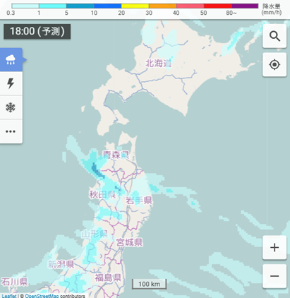 降水分布予想09・18時