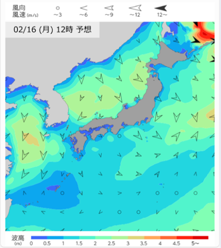 2月16日12時の波と風の予想