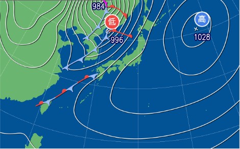 今日は、日本付近を通過する前線の影響で、南西諸島や西日本から東海にかけては雨が降りやすく、局地的に雷雨となる所がある見込みです。一方、東日本から北日本にかけては、日中は晴れる所が多いものの、次第に雲が広がり、夜には北日本で雨や湿った雪の降る所があるでしょう。また、全国的に南よりの風が強まり、春一番の吹く可能性があります。積雪の多い地域では雪どけが急速に進むため、なだれや落雪、融雪による低い土地の浸水、河川の増水に注意が必要です。