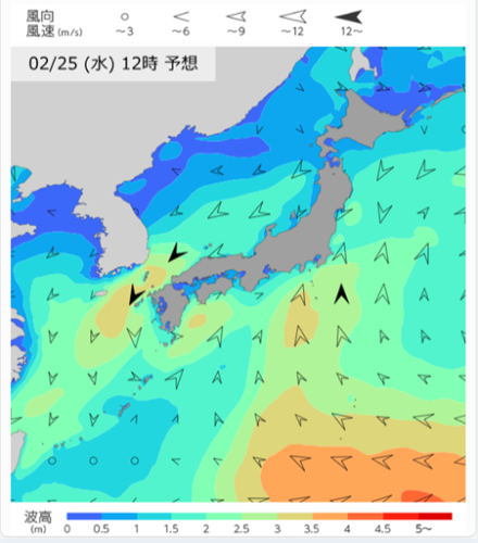 2月25日12時の波と風の予想