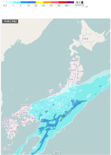 日本付近の雨雲の予想(2月25日15時)