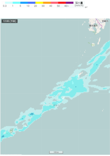 沖縄奄美付近の雨雲の予想(2月25日12時)