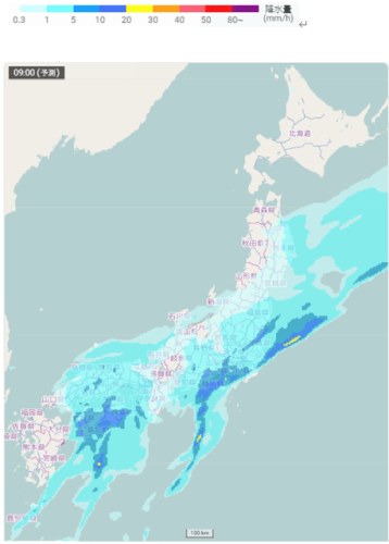 日本付近の雨雲や雪雲や予想(2月25日09時)