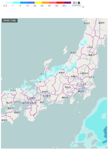 東日本では、北陸は雲が多く、北陸三県は昼頃まで雨が降り、新潟県では夕方まで雨が降るでしょう。関東と東海では午前は雲が多いですが、東海と甲信は昼前から、関東は昼過ぎから晴れる見込みです。伊豆諸島は雲が広がって雨が降り、所により雷を伴うでしょう。落雷、突風注意が必要です。関東北部の山沿いと長野県北部では、夕方から雨か雪が降る見込みです。東日本の多雪地帯では、なだれ注意が必要です。関東と伊豆諸島の沿岸と周辺海域では、船舶は強風と高波に注意してください。