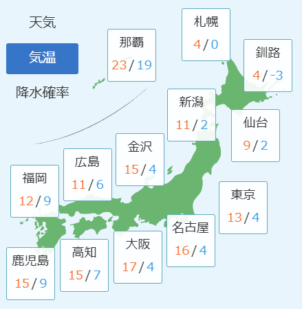 全国の天気と気温