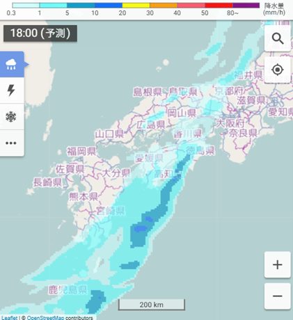 降水分布予想09・18時