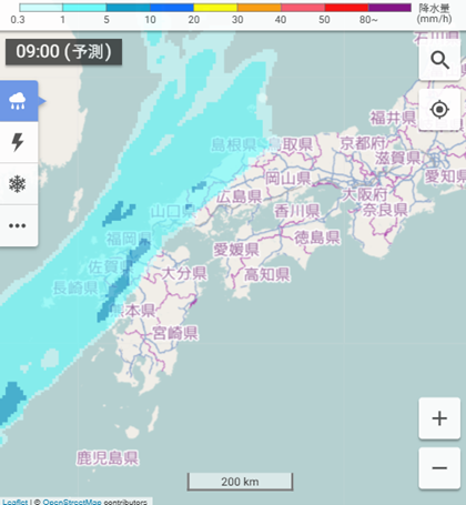 九州北部では朝から雨が降り出し、雨の範囲は日中にかけて広い範囲に広がり、所により雷を伴うでしょう。急な強い雨、落雷、突風などの天気の急変にご注意ください。夜は九州から天気は回復しますが、近畿地方周辺では雨が残りそうです。天気変化にご注意ください。