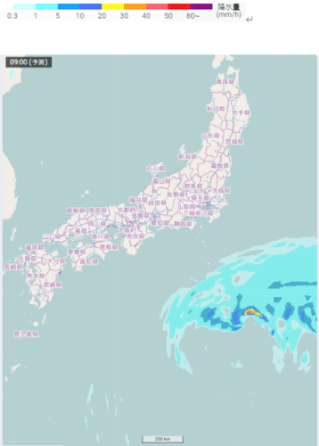 伊豆諸島や小笠原諸島付近の雨雲の予想(3月14日09時)