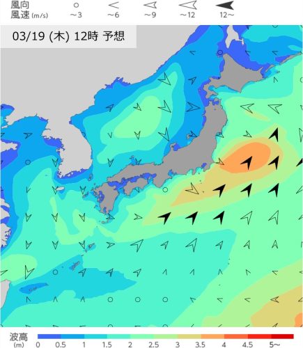 きょう12時の風と波の予想