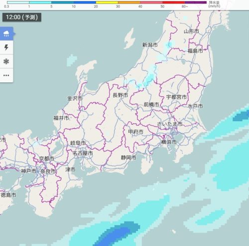 きょう12時の雪雲・雨雲の予想(東日本)