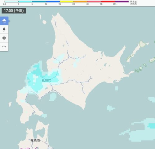 きょう17時の雪雲・雨雲の予想(北海道)