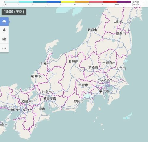 雨雲の予想(18時)