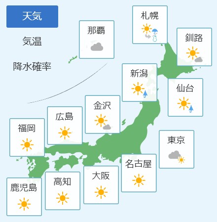 予想天気と気温(全国)